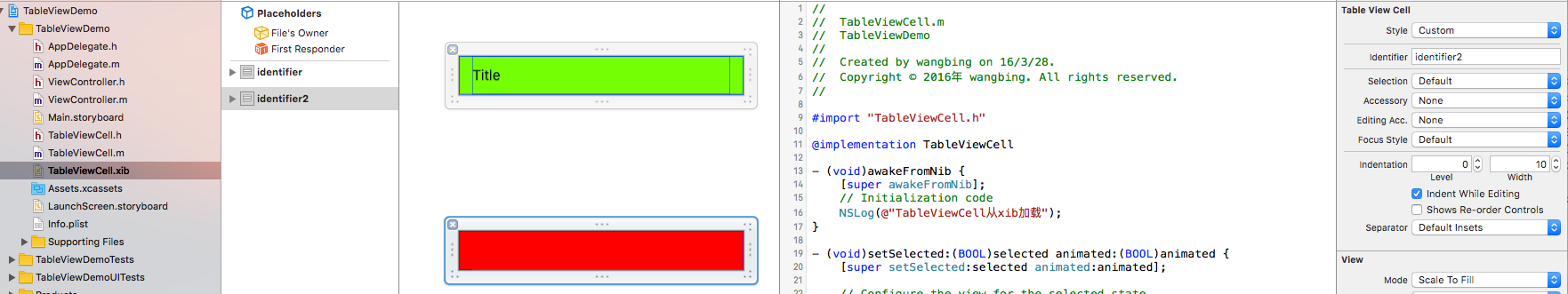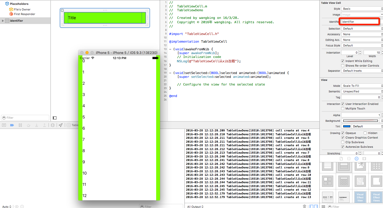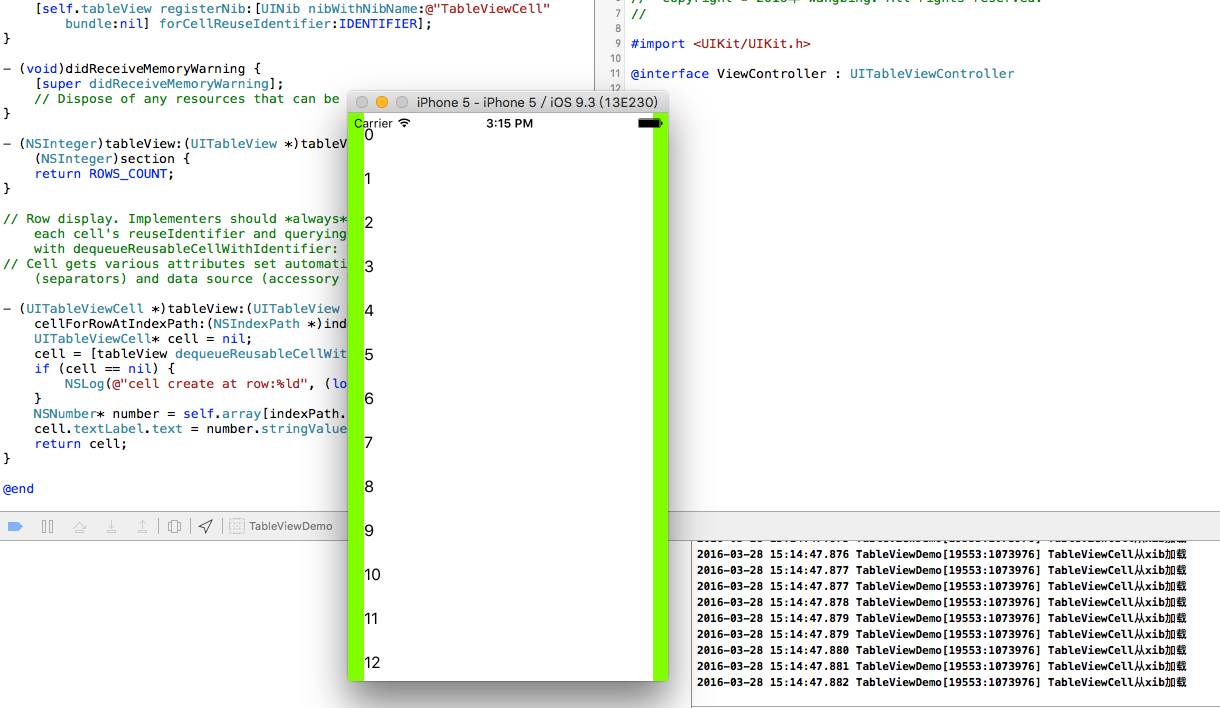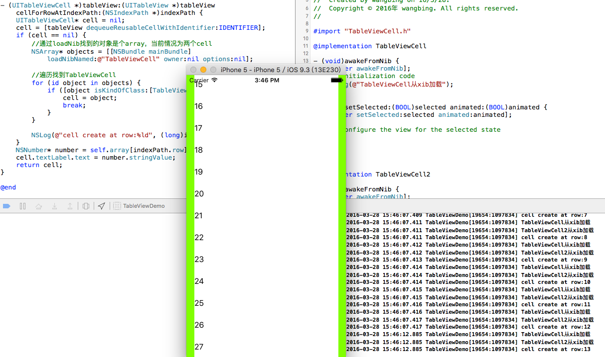 可以看到,cell是从xib加载的,cell创建现象与代码创建相同。