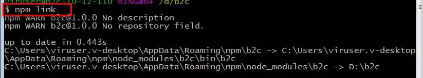 b2c-init文件中写console.log(1),然后在其他任意目录执行如下命令,如果能正常打印出1,基本上就成功了,后面只需要熟悉一下commander这个包如何解析命令行参数即可