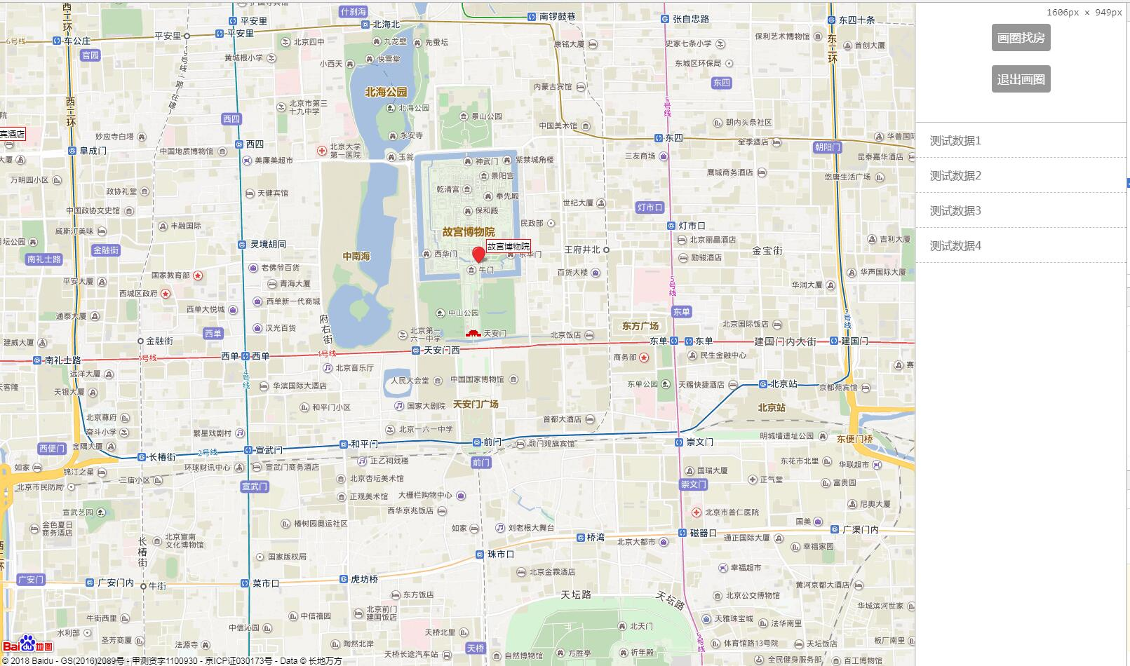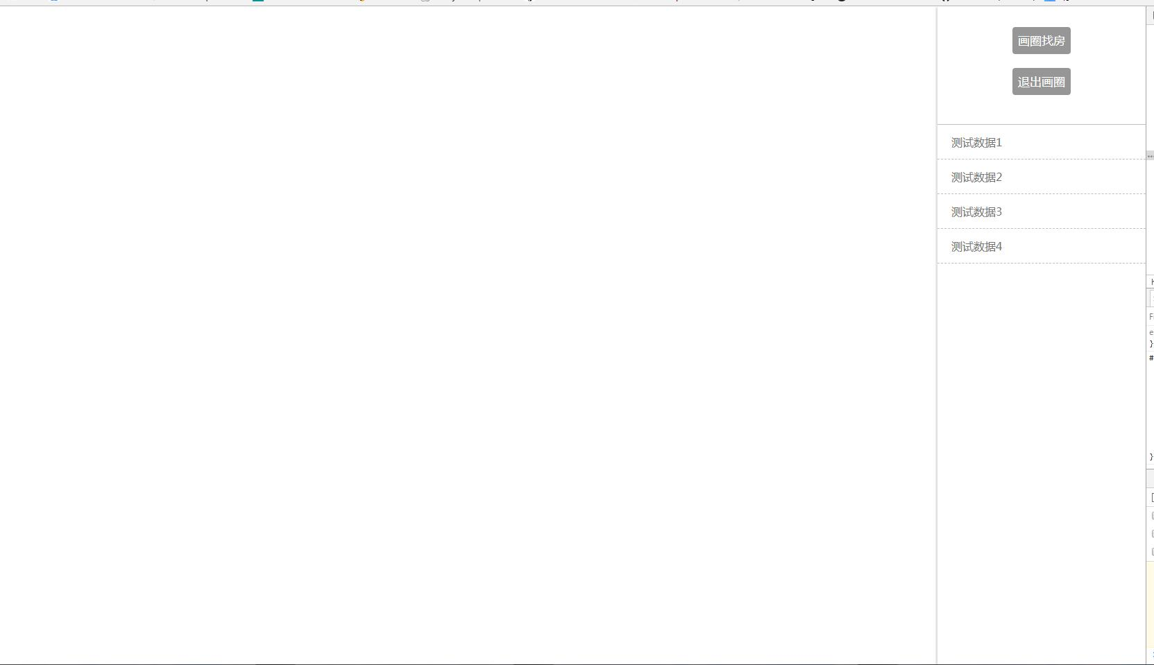 上述实现了一个左侧自适应右侧固定宽度的布局,左侧容器用于展示百度地图,右侧是操作面板,页面如下图所示,点击画圈找房进入画圈状态,点击退出画圈按钮进入正常操作地图状态, 按钮下面是显示数据列表部分