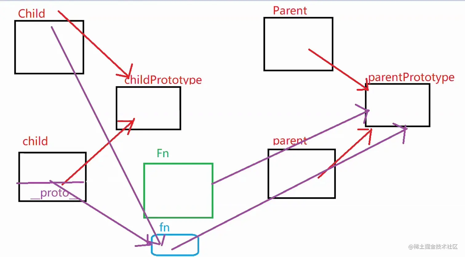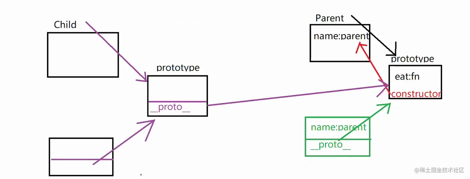 第二行,我们将这个空对象的proto成员指向了F函数对象prototype成员对象;