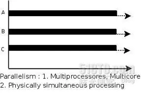 多线程,交替执行,另一种意义上的串行。多进程,并行执行,真正意义上的并发。