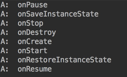 销毁至重建的流程:onPause->onSaveInstanceState->onStop->onDestroy->(销毁后重建)onCreate->onStart->onRestoreInstanceState->onResume