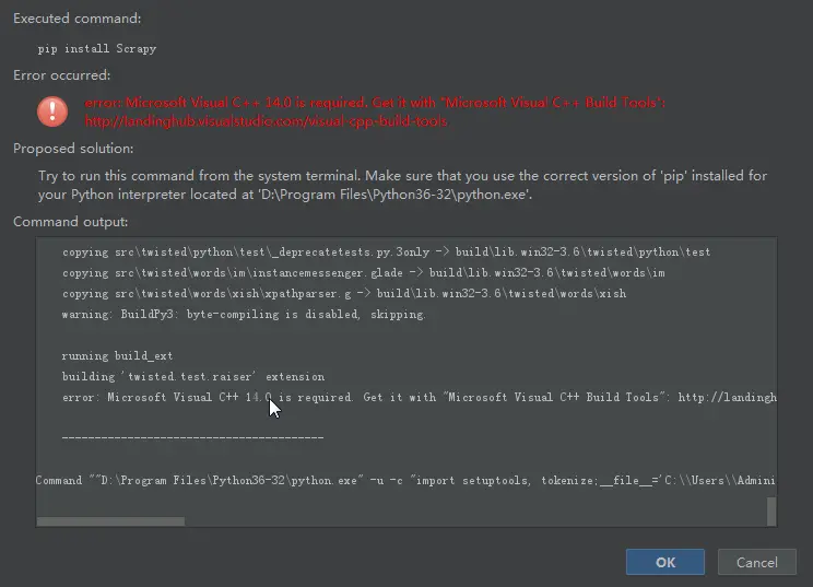 因为要学一点爬虫,我要安装 Scrapy 这个库,直接用 Pycharm 安装就报错, pip 也不行,所以要把 Scrapy 依赖的库安装好,然后再安装 Scrapy 。也就是说,lxml、pyOpenSSL、Twisted、pywin32 这些基本库都要安装好。