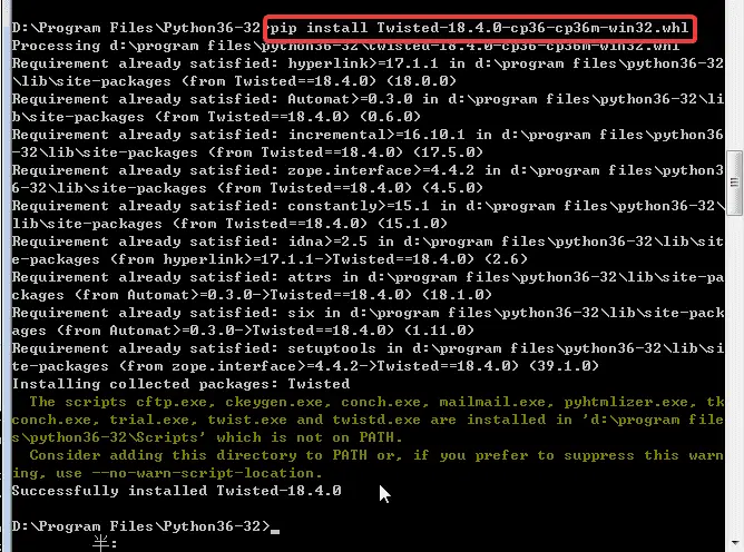 pip install Twisted-18.4.0-cp36-cp36m-win32.whl