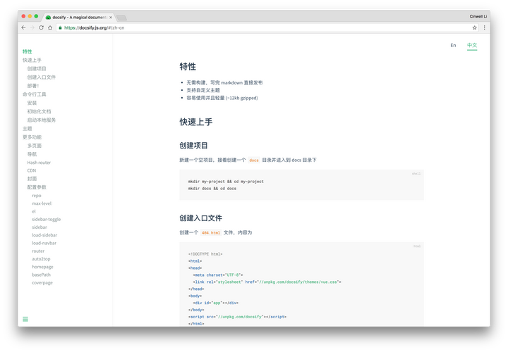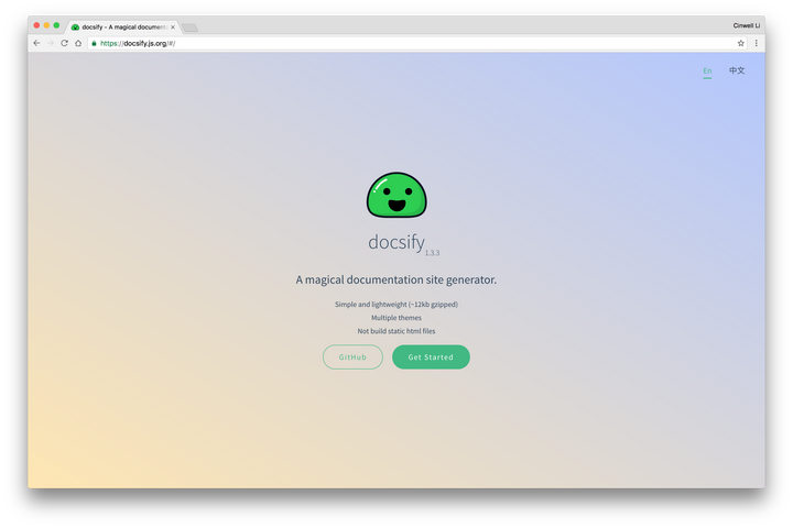 docsify 同样也是一个文档生成工具,只不过它是直接加载 Markdown 文件并动态渲染。同时还可以生成封面页。所以以后我们只需要写完 Markdown 文档,直接推到仓库上就完成了。