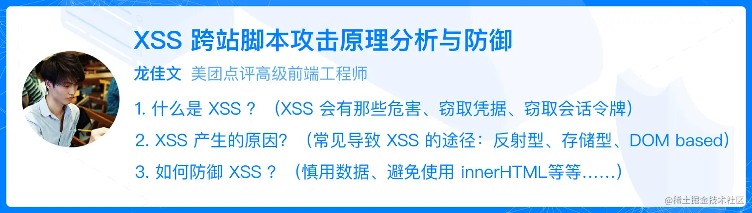 第八期 JTalk 邀请了美团点评技术团队的工程师。在本期《前端安全大起底》线下活动中来和大家一起聊聊前端安全,了解前端安全中一些常见攻击方式和防御之道。