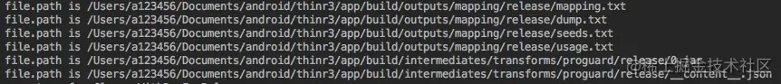 那么既然已经获得了混淆之后的产物,那么就可以针对该产物进行操作了。首先毋庸置疑的是最终一定是针对 class 文件进行操作,那么混淆之后的产物是 class 文件么?不妨在 each {} 闭包中输出文件的路径: