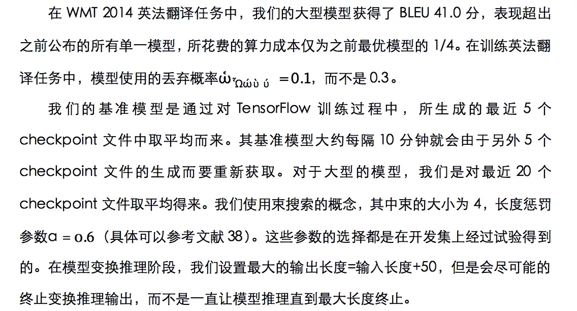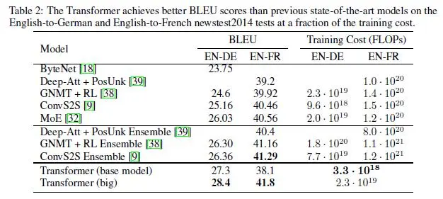 对于翻译任务,变换器模型相比于递归神经网络和卷积神经网络有着极快的训练速度。在WMT 2014的英德翻译任务中和WMT 2014的英法翻译任务中,我们都达到了前所未有的表现。在前面提高的任务中,我们最好的变换器模型甚至都超越了所有公布的组合模型。