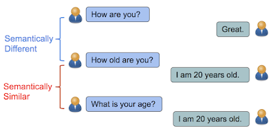 如果句子可以通过相同的答复来回答,那么它们在语义上是相似的。否则,它们在语义上是不同的。