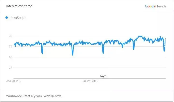 可以说在 2018 年甚至以后,JavaScript 市场充满机会。JavaScript 已经深入像 Angular, React, Ember, Backbone 这种前段框架,以及 Node.js(一种支持 JavaScript 在服务端高效运行的平台)等平台,2017 年,StackOverflow 评选出的四种最受欢迎的框架中有三种都是基于 JavaScript。
