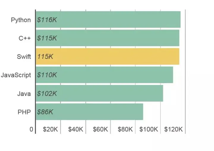 作为后起之秀,Swift 在 iOS 和 Mac OS 应用开发上似乎更胜于他的前辈 Objective-C. 短短几年时间 Swift 就快速流行起来,并且在多数排行榜中力压 Objective-C。一门既受开发者喜欢,薪资又高的语言,你还要求什么呢?