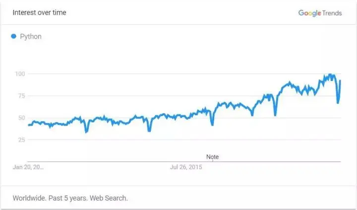 Python 同时也受到 NASA, Google 这样的大佬们的亲睐,python 的发明者 Guido van Rossum 在受雇于 Google 的 8 年里花了大半的时间来维护 python 的开发。