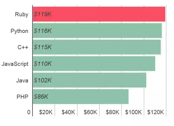 选择 Ruby on Rails 作为职业方向是很棒的选择,毕竟以“优化程序员的幸福”为原则的 Rails,同样有着不错的薪资待遇。唯一的缺点就是 Ruby 不如上面提到的几种语言普及度高,所以能提供的职位也相对有限。