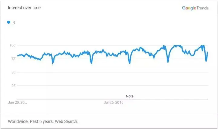 R是用于统计分析、绘图以及数据分析的语言和操作环境,同时也是数据科学家们的第一选择。如果你对这个领域感兴趣的话,R语言是一个稳定,价值高的职业方向