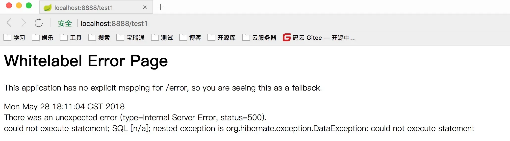 启动项目,浏览器访问http://localhost:8888/test1,浏览器如图所示,报错了,因为第四条数据超长了。