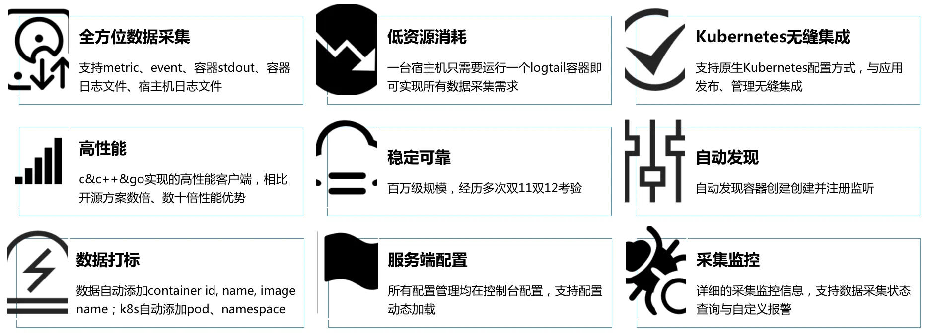- K8S无缝集成:采集配置支持yaml方式部署,兼容K8S各种集成方式。