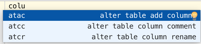此时,SQL editor中会立刻插入添加列的语法模板,你只需继续输入表和列即可(使用tab键在待编辑元素间切换)