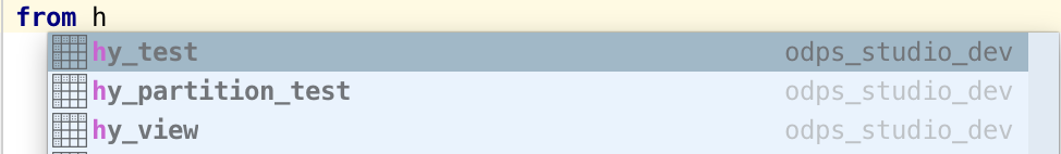 SQL语法结构有了,接下来就是往里填各种实体元素(主要包括表和函数)。同样的,难道要我完整的记住表名或函数名才能完成SQL吗?当然不需要,studio想你所想: