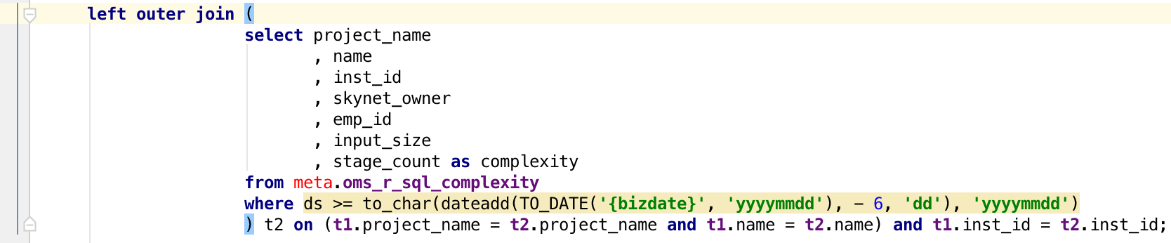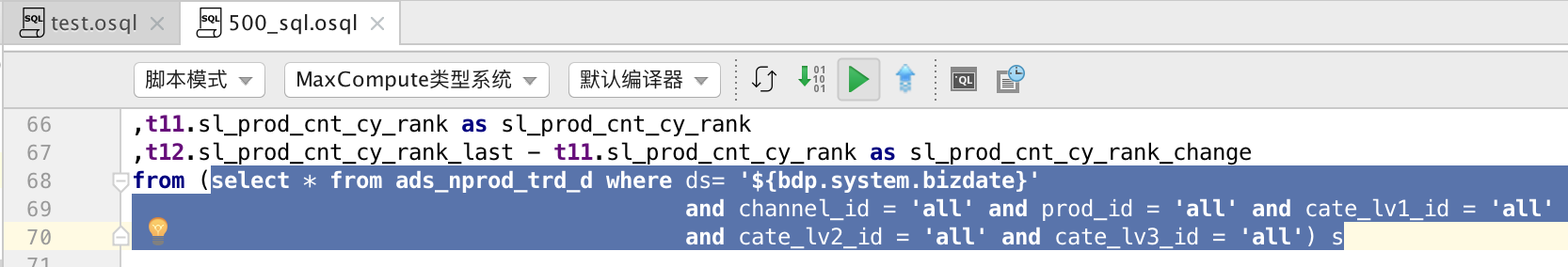 - 当SQL比较长时,可点击左侧的折叠按钮,把子句折叠起来,便于排除干扰。