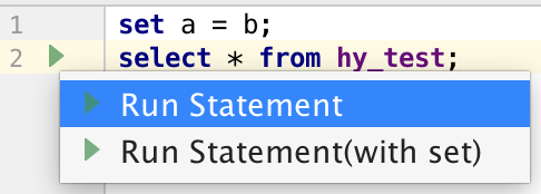 - 通过左侧边栏的gutter icon,执行单条语句(with set表示带着set语句一起):