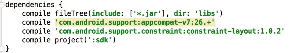 (2)Jar dependency:通过引入libs文件夹中所有的.jar和.aar后缀文件来进行依赖。