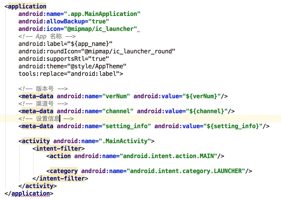 manifestPlaceholders属性用于设置不同渠道中的不同属性,这些属性需要在AndroidManifest.xml文件中声明才能使用。