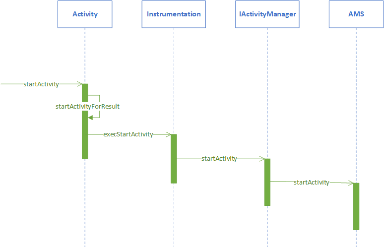 从图4可以发现,在Activity通过AMS校验前,会调用Activity的startActivityForResult方法: frameworks/base/core/java/android/app/Activity.java