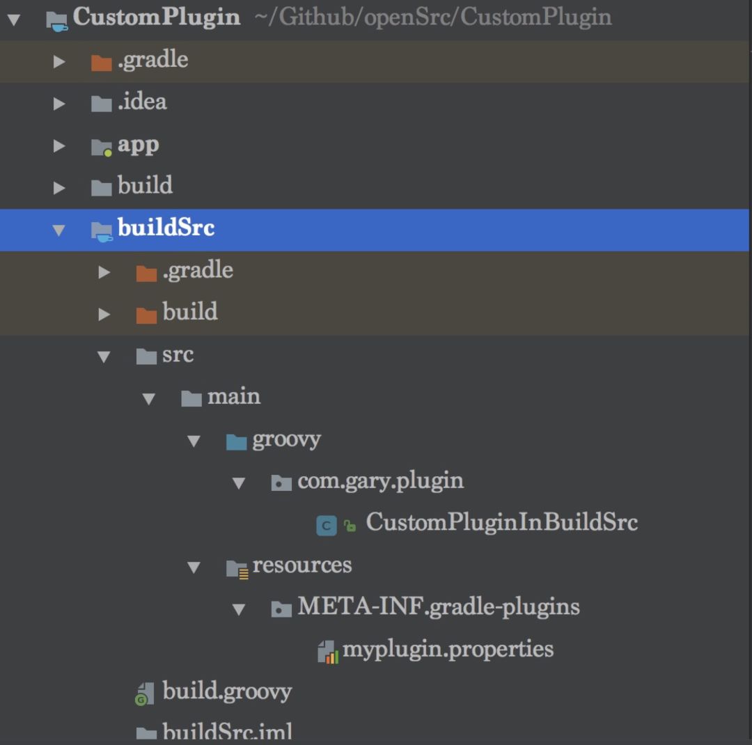 除了直接写在某个模块的构建脚本中,我们还可以将插件写在工程根目录下的buildSrc目录下,这样可以在多个模块之间复用该插件。