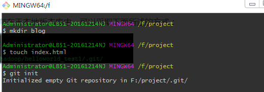 git init 产生一个.git的文档 Initialized empty Git repository in F:/project/.git/