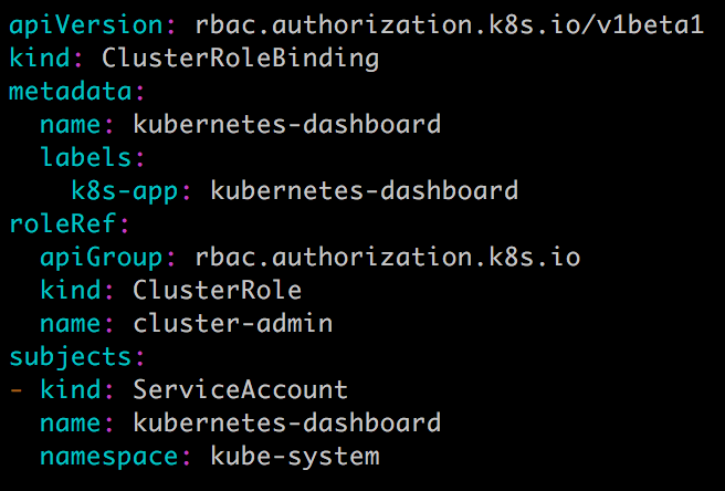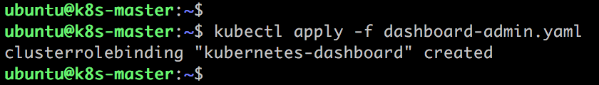 Dashboard 支持 Kubeconfig 和 Token 两种认证方式,为了简化配置,我们通过配置文件 dashboard-admin.yaml 为 Dashboard 默认用户赋予 admin 权限。