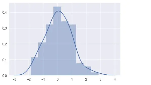 在 seaborn 中,快速观察单变量分布的最方便的方法就是使用 distplot() 函数。默认会使用柱状图(histogram)来绘制,并提供一个适配的核密度估计(KDE)。