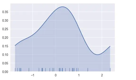 sns.distplot(x, hist=False, rug=True);