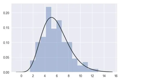 你也可以使用distplot()将参数分布拟合到数据集,并可视化地评估其与观察数据的对应程度:
