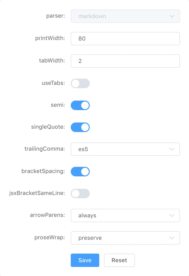 扩展的原理非常简单,popup 页面用来修改 Prettier 的各种选项并保存到 localStorage 中。