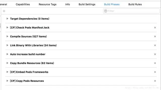 通常,如果你使用CocoaPod来管理三方库,那么你的Build Phase是这样子的: