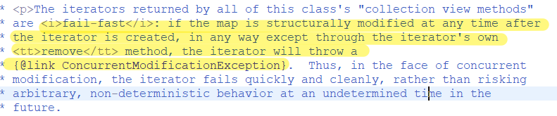 下面我们来看看官方文档在HashMap这个集合中,它是怎么解释fail-fast的(如下图):