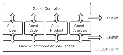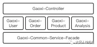 Gaoxi-User、Gaoxi-Analysis、Gaoxi-Product、Gaoxi-Order这四个系统相当于以往三层结构的Service层,提供系统的业务逻辑,只不过在微服务结构中,Service层的各个模块都被抽象成一个个单独的子系统,它们提供RPC接口供上面的Gaoxi-Controller调用。它们之间的调用由Dubbo来完成,所以它们的pom文件中并不需要作任何配置。而这些模块和Gaoxi-Common-Service-Facade之间是本地调用,因此需要将Gaoxi-Common-Service-Facade打成jar包,并让这些模块依赖这个jar,因此就需要在所有模块的pom中配置和Gaoxi-Common-Service-Facade的依赖关系。