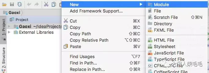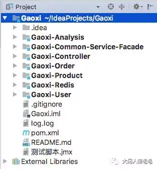 这也是目前主流的项目组织形式,即多模块项目。在Gaoxi这个项目下创建各个子模块,每个自模块都是一个独立的SpringBoot项目: