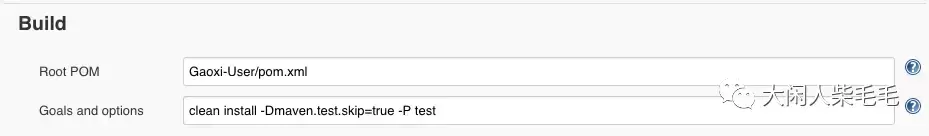 在所有Jenkins中所有Maven命令的末尾添加-P test,在打包的时候-P后面的参数将会作为@profileActive@的值传入系统中,从而根据该值打包相应的application-{profileActive}.properties文件。