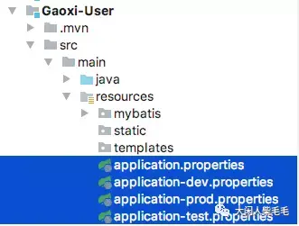 分别为dev环境、test环境、prod环境创建三套配置,application.proerpties中存放公用的配置:在application.properties中添加spring.profiles.active=@profileActive@
