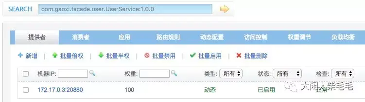 当我们搜索UserService服务后,可以看到,该服务的提供者已经成功发布了服务: