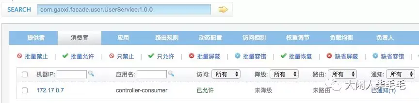 点击“消费者”我们可以看到,该服务已经被controller-consumer成功订阅: