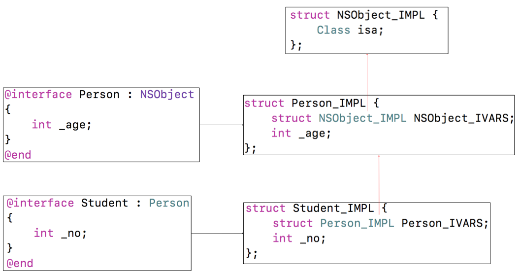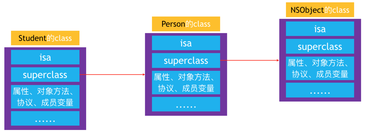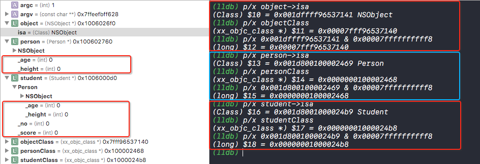 NSLog(@"%p %p %p %p %p %p", objectClassData, personClassData, studentClassData,