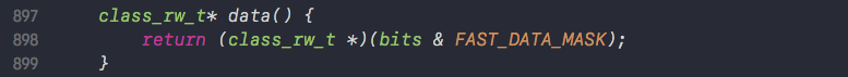 class_rw_t* data() { // 提供data()方法进行 & FAST_DATA_MASK 操作