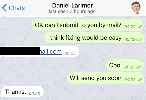 We trying to report the bug to him.