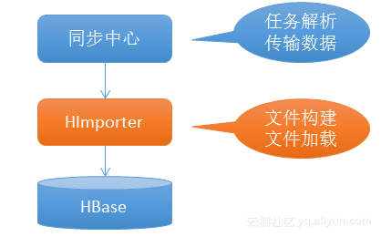 HImporter是用于辅助数据同步的中间层,他会把所有HFile的构建,加载逻辑下沉到HImporter层。