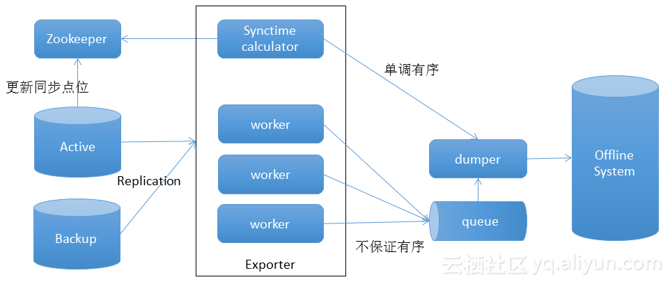 增量数据导出需要解决的问题主要是离线数据的T+1处理特点、吞吐量 、实时性、主备流量切换等。