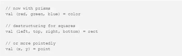 Android KTX 使用解构来分配颜色的组件值。您可以在您的类中使用解构,或者扩展现有的类来添加解构。