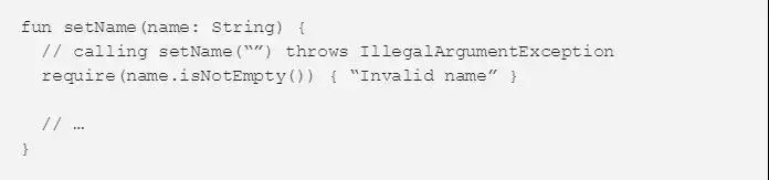 您方法的参数是有效的吗?用 require 在使用前可以检查它们,如果它们是无效的将会抛出 IllegalArgumentException。