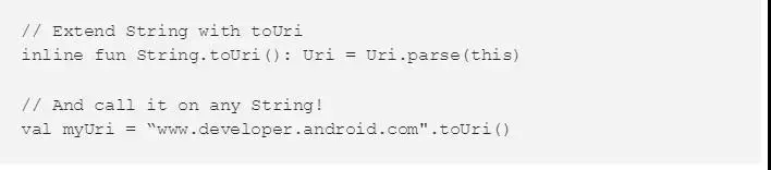 没有更多的 Util 类。通过使用扩展功能扩展类的功能。把您要扩展的类的名字放在您添加的方法的名字前面。